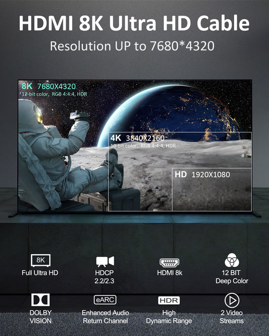 8K HDMI 2.1 Cable Certified for 8K@60Hz 4K@120Hz 2K@240Hz